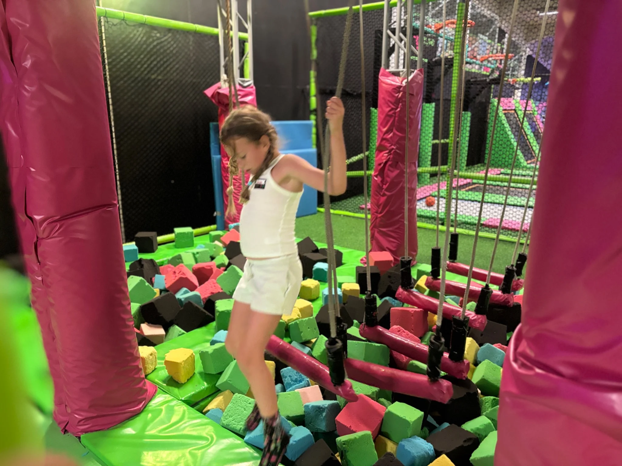Lekeområdet er best egnet for barn under 14 år. En variasjon til trampolinene og et fint område å leke i. Artige hinder man kan utforske og finne flere veier mellom skliene, utgangene og ballbingen.